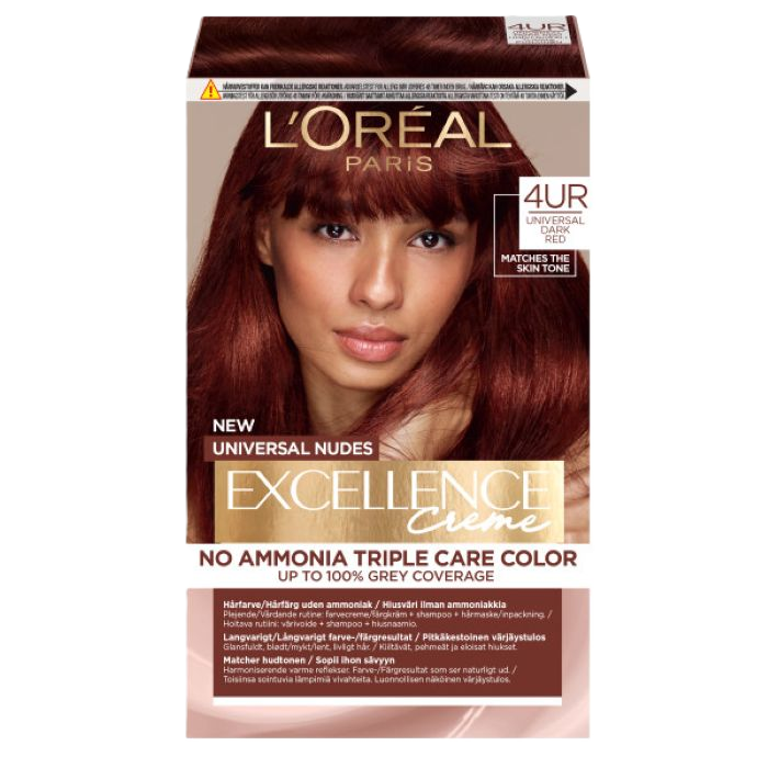 L’Oréal Paris Excellence Universal Nudes är en ammoniakfri hårfärg med reflexer som matchar alla hudtoner. Reflexen 'U' i formulan är en unik blandning av varma och kalla reflexer och ger ett fylligt färgresultat som ser naturligt ut.